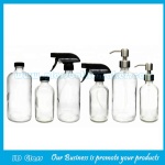 8oz and 16oz Clear Boston Round Glass Bottles With Caps or Trigger Sprayers or Pumps